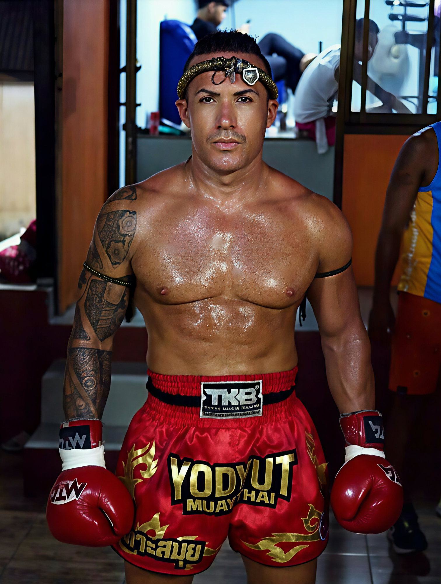 Authentische Praxis: Als aktiver Kämpfer in Thailand bringt er echtes Wissen aus der Wiege des Muay Thai mit.